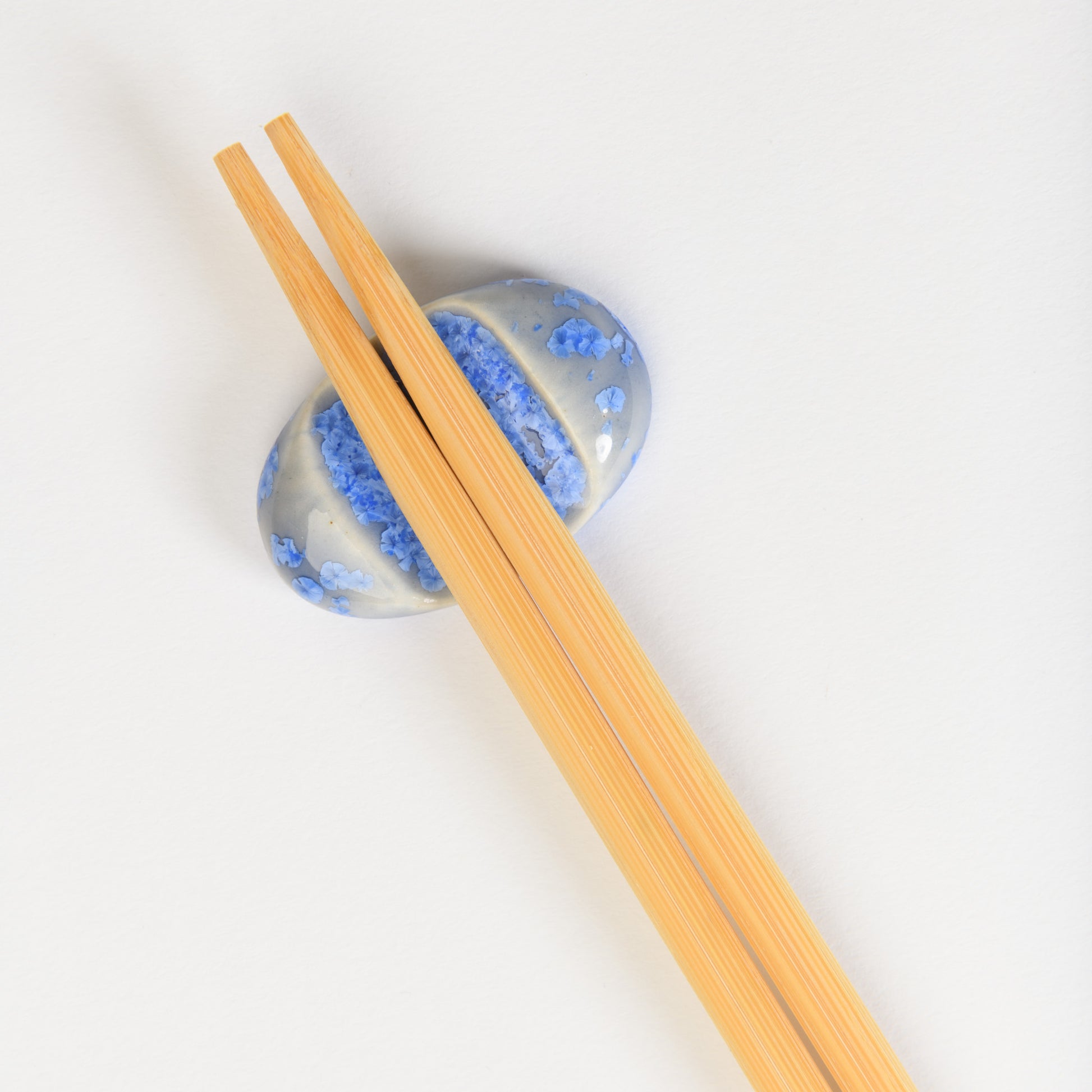 Each chopstick holder is glazed with a beautiful crystalline finish, creating a unique pattern of crystals over a blue background - no two are ever the same!