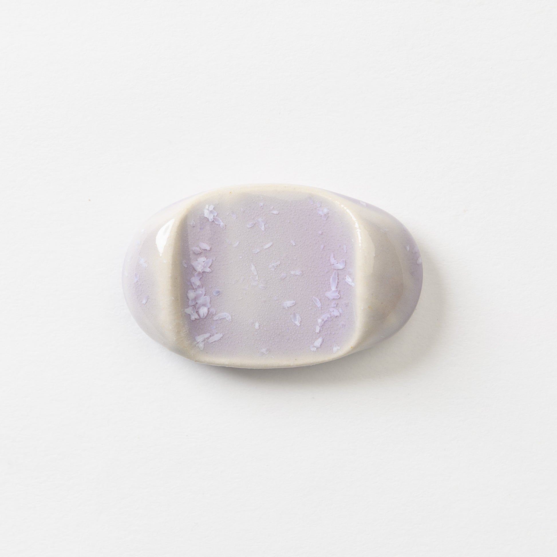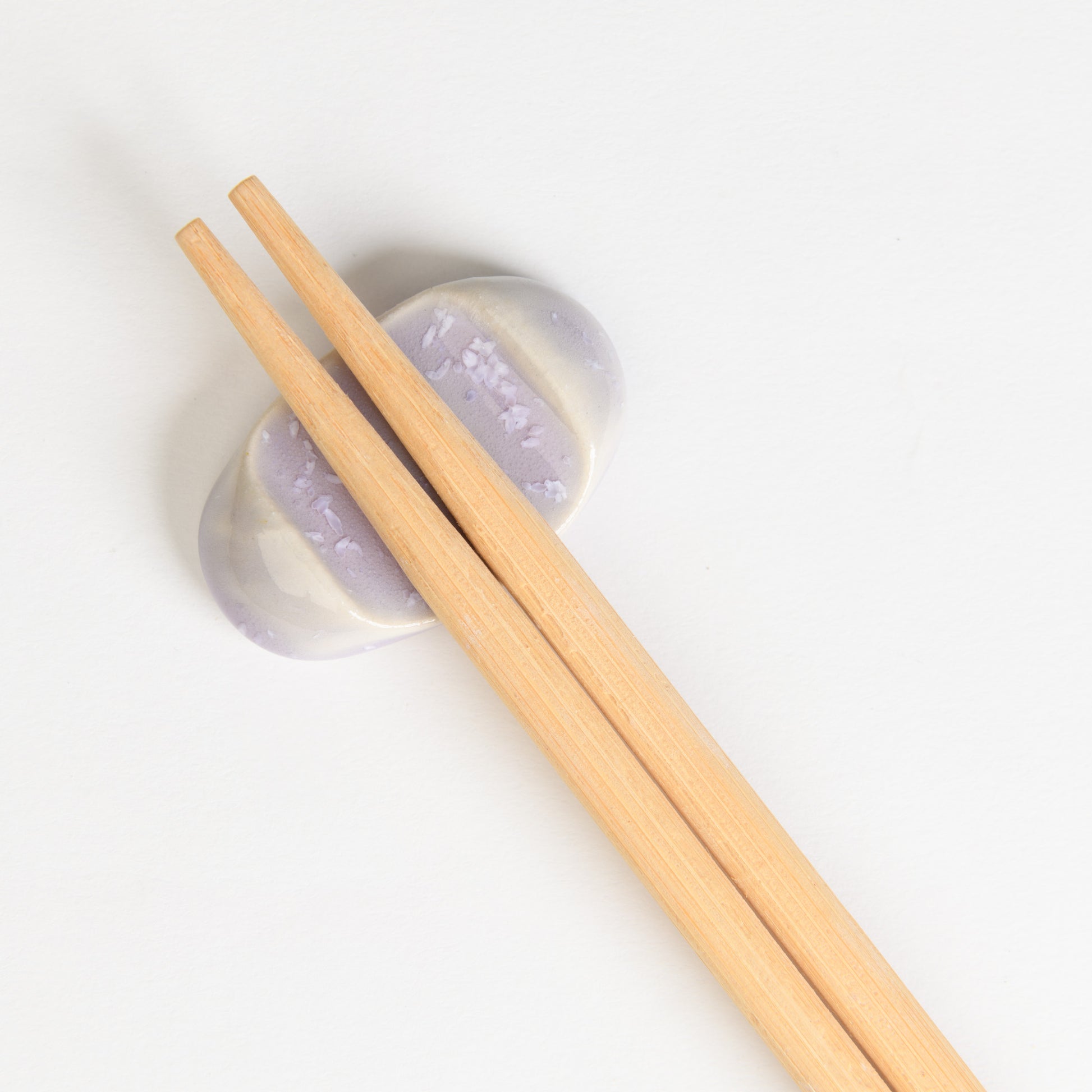 Each chopstick holder is glazed with a beautiful crystalline finish, creating a unique pattern of white crystals over a lilac background - no two are ever the same!