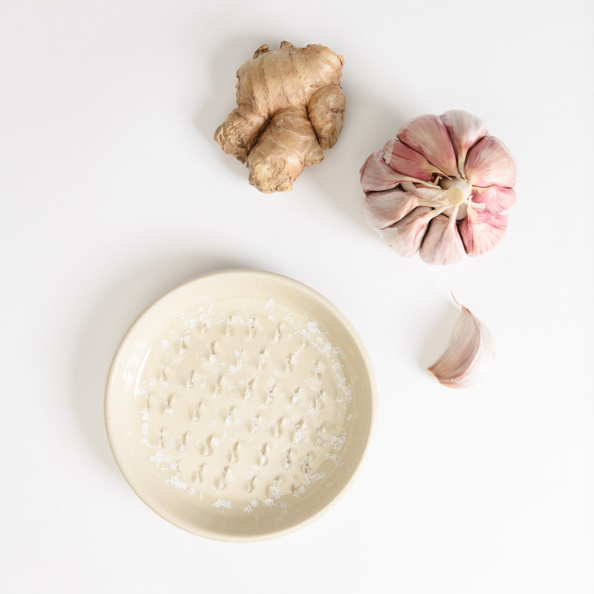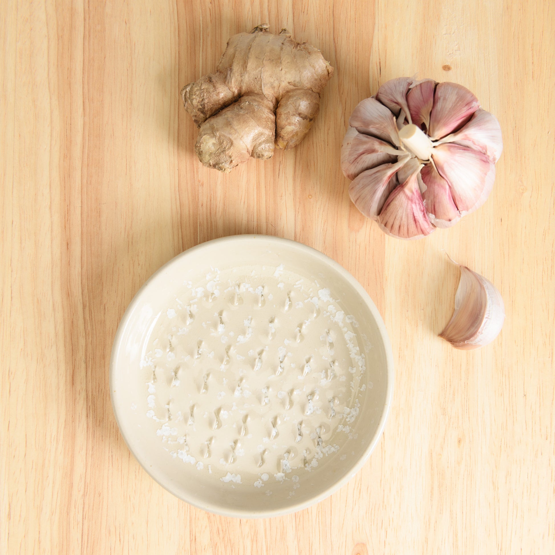 These textured dishes are super easy to use and clean. The friction against the textured base turns the garlic/ginger into a pulp that can be scooped directly into your dish.