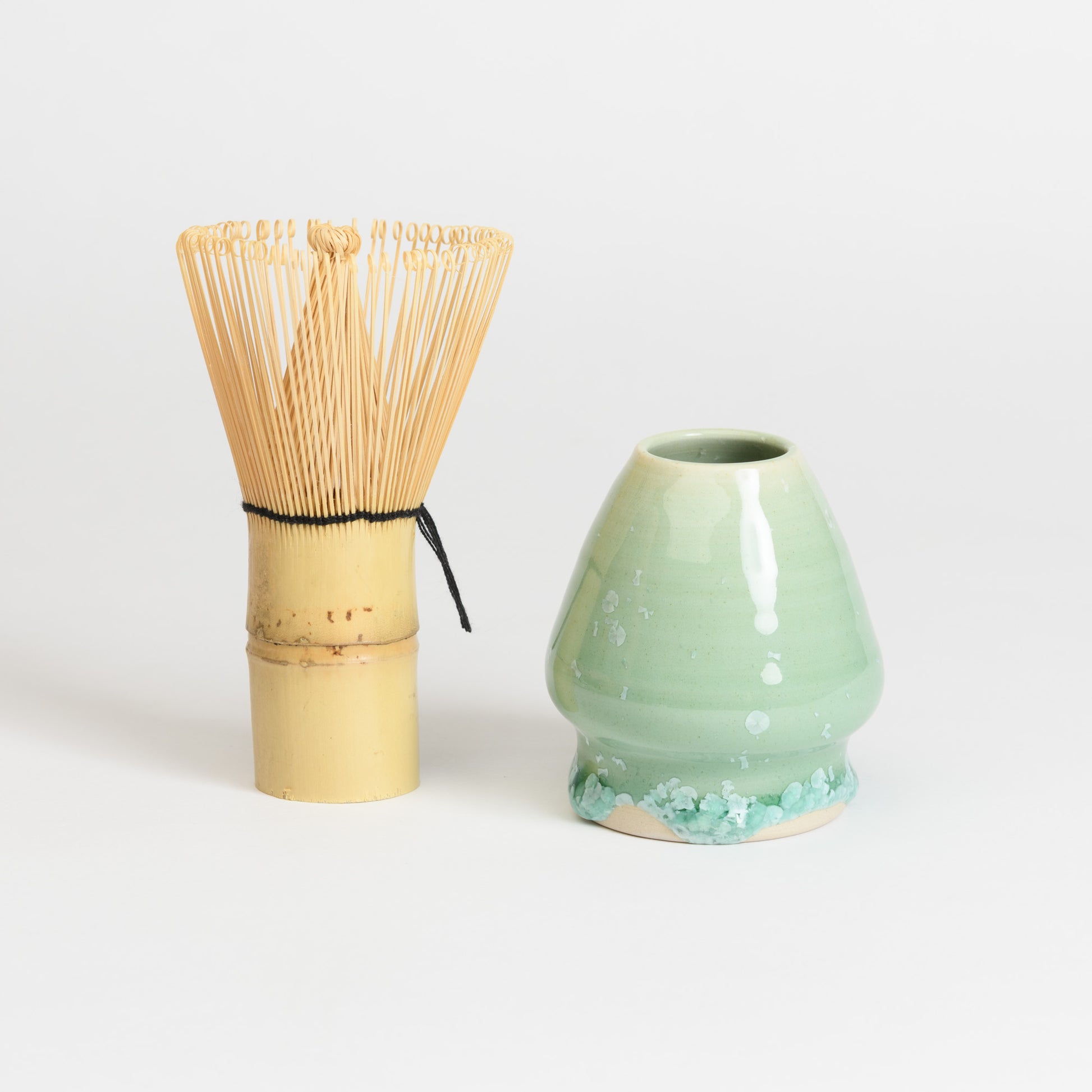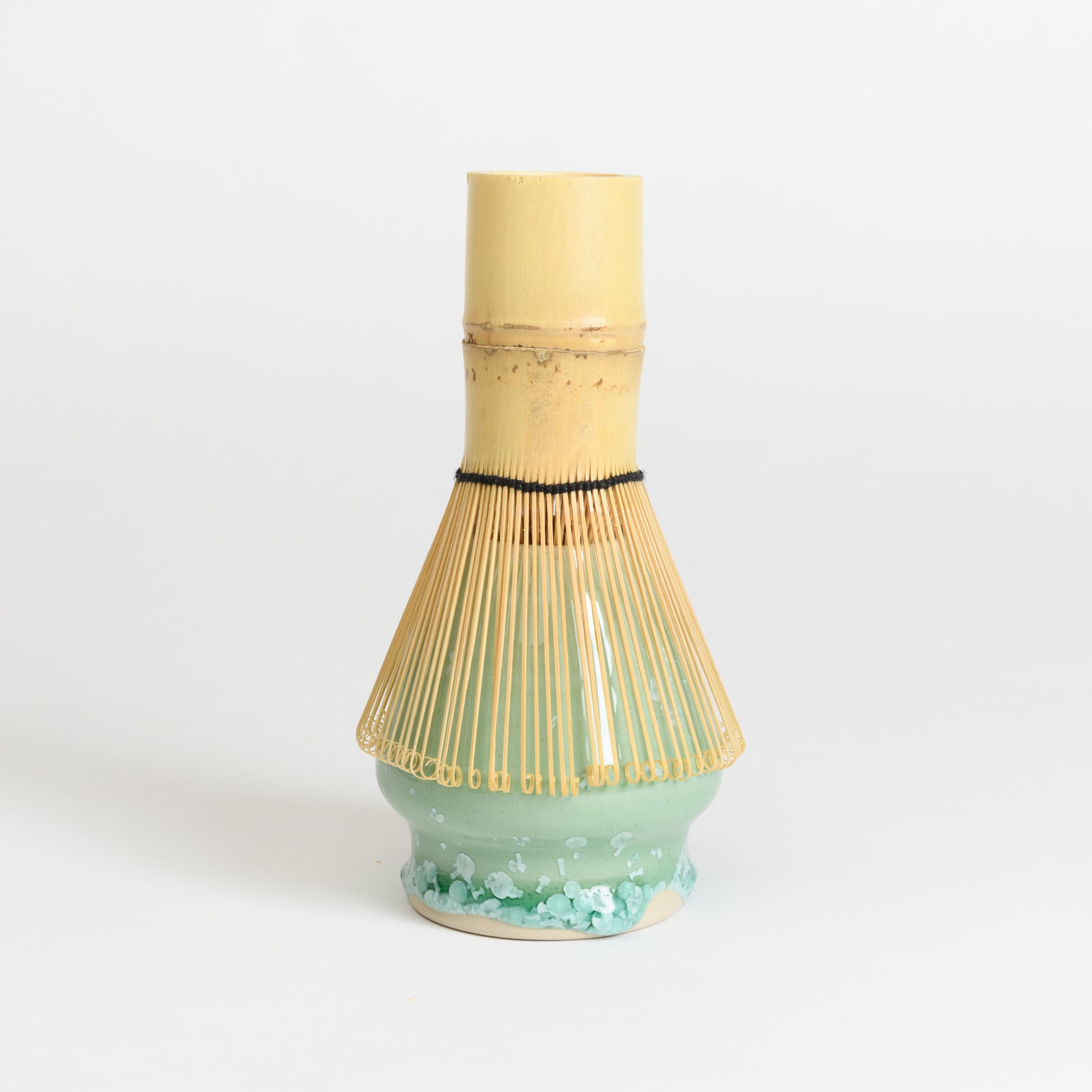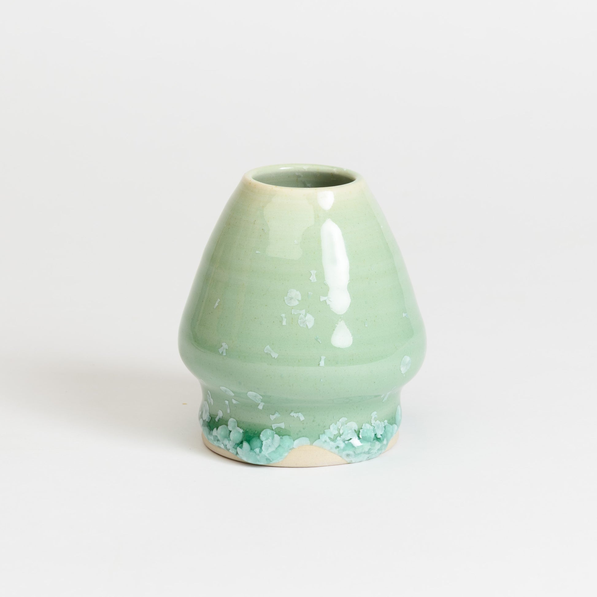 Glazed with a beautiful, crystalline glaze, each whisk holder features a unique pattern of crystals set against a mint green background. No two are ever the same!