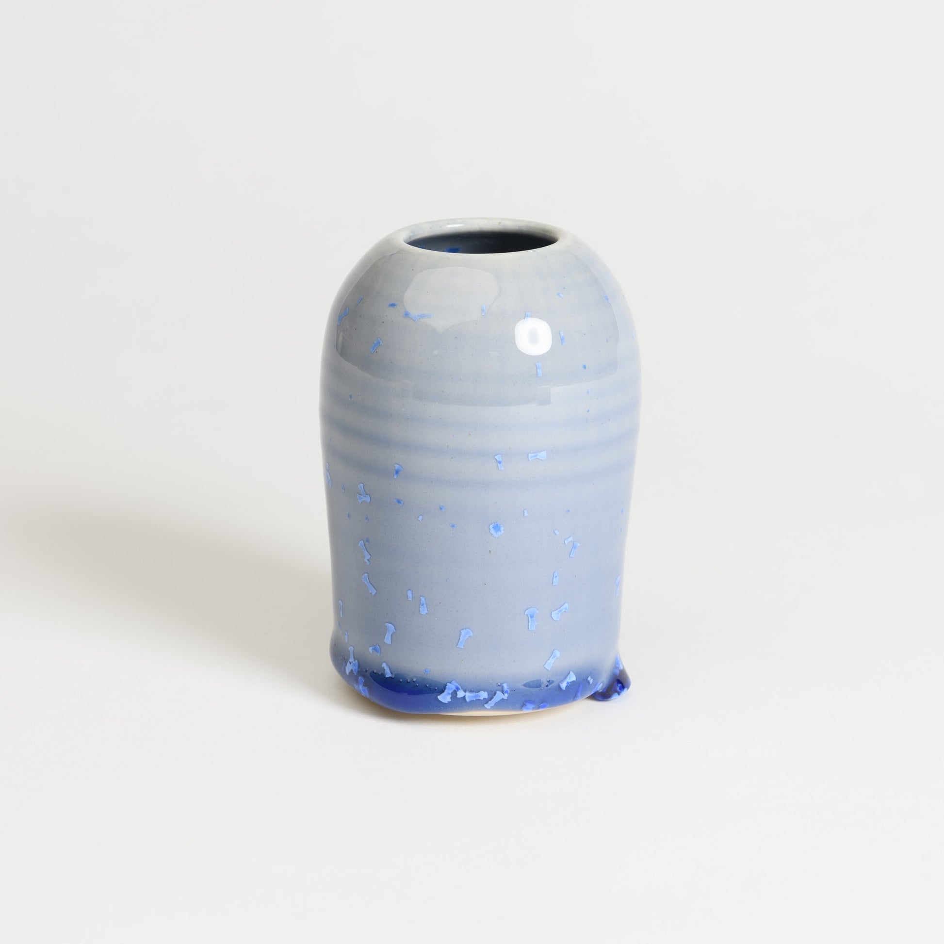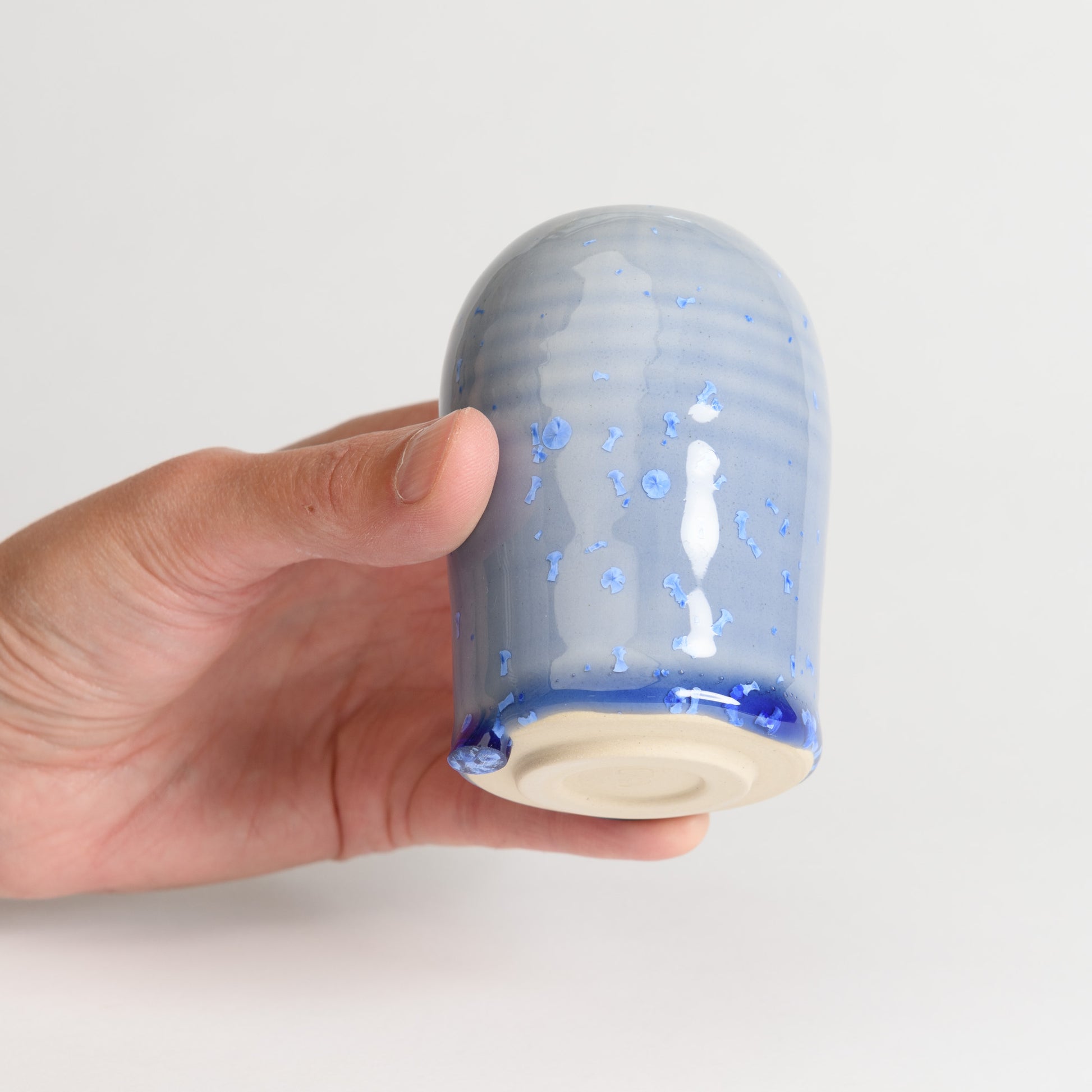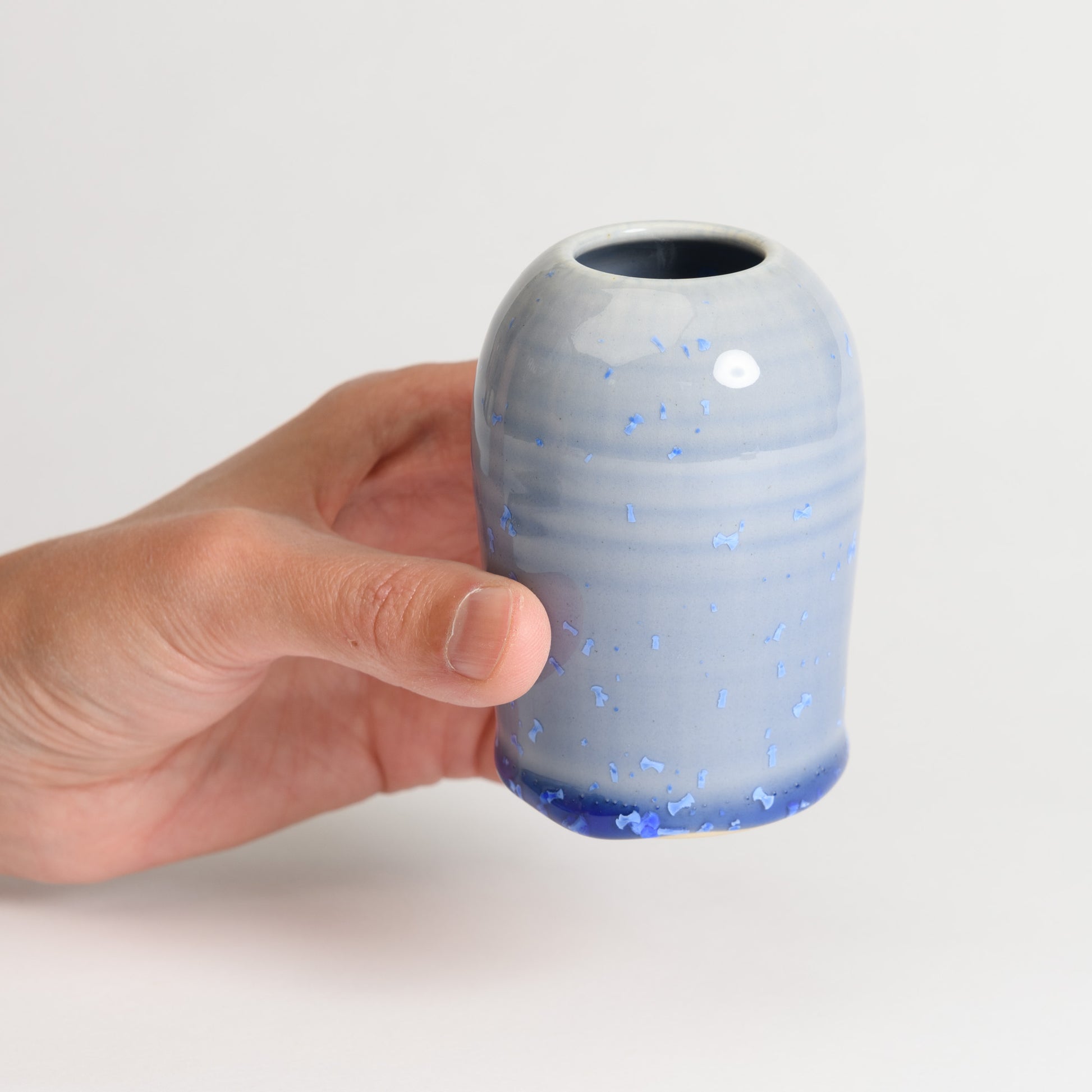 Handmade ceramic mini vase glazed with a blue glaze with beautiful crystals.