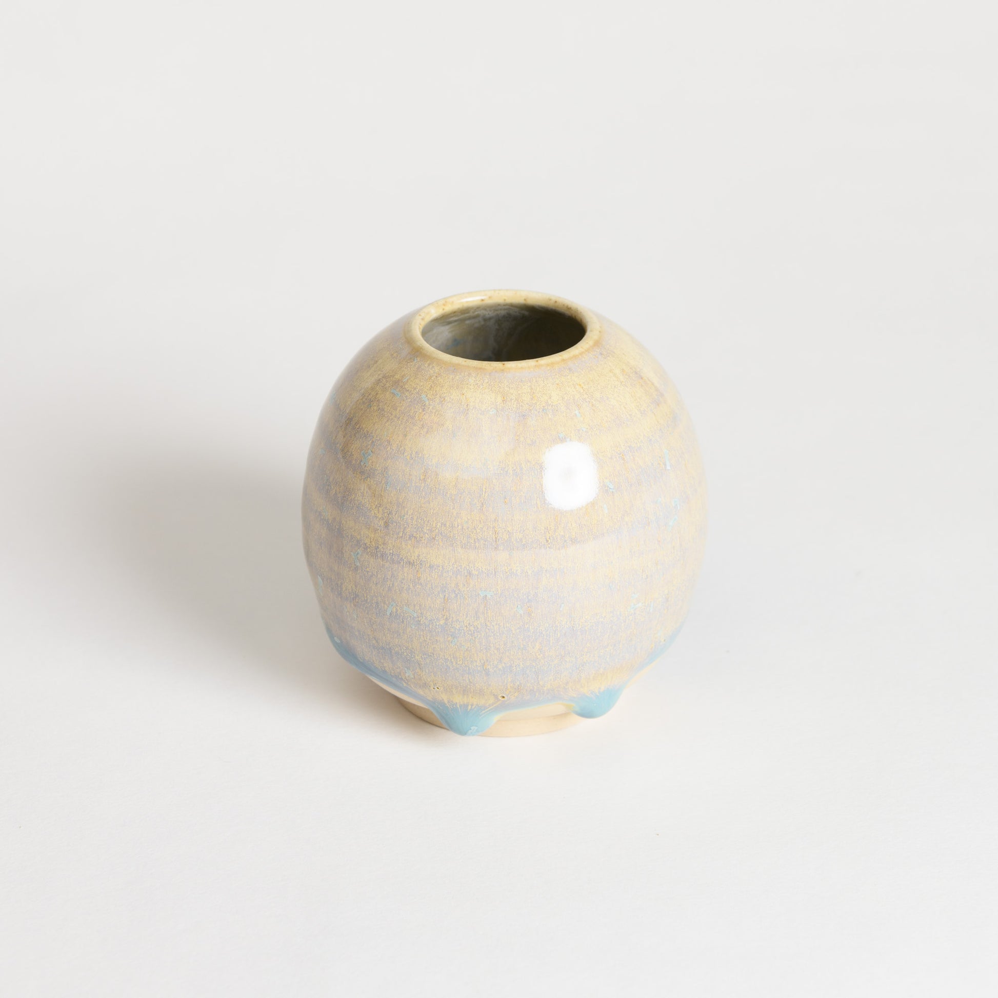 Handmade ceramic mini vase glazed with a multi-tonal glaze with beautiful baby blue crystals.