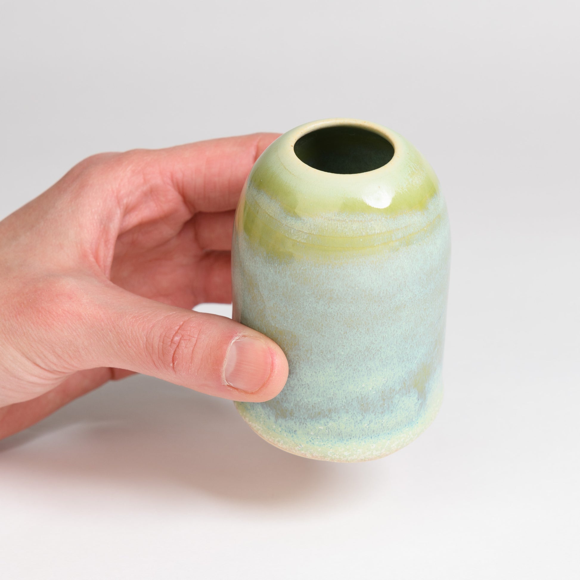 Handmade ceramic mini vase glazed with a multi-tonal glaze.