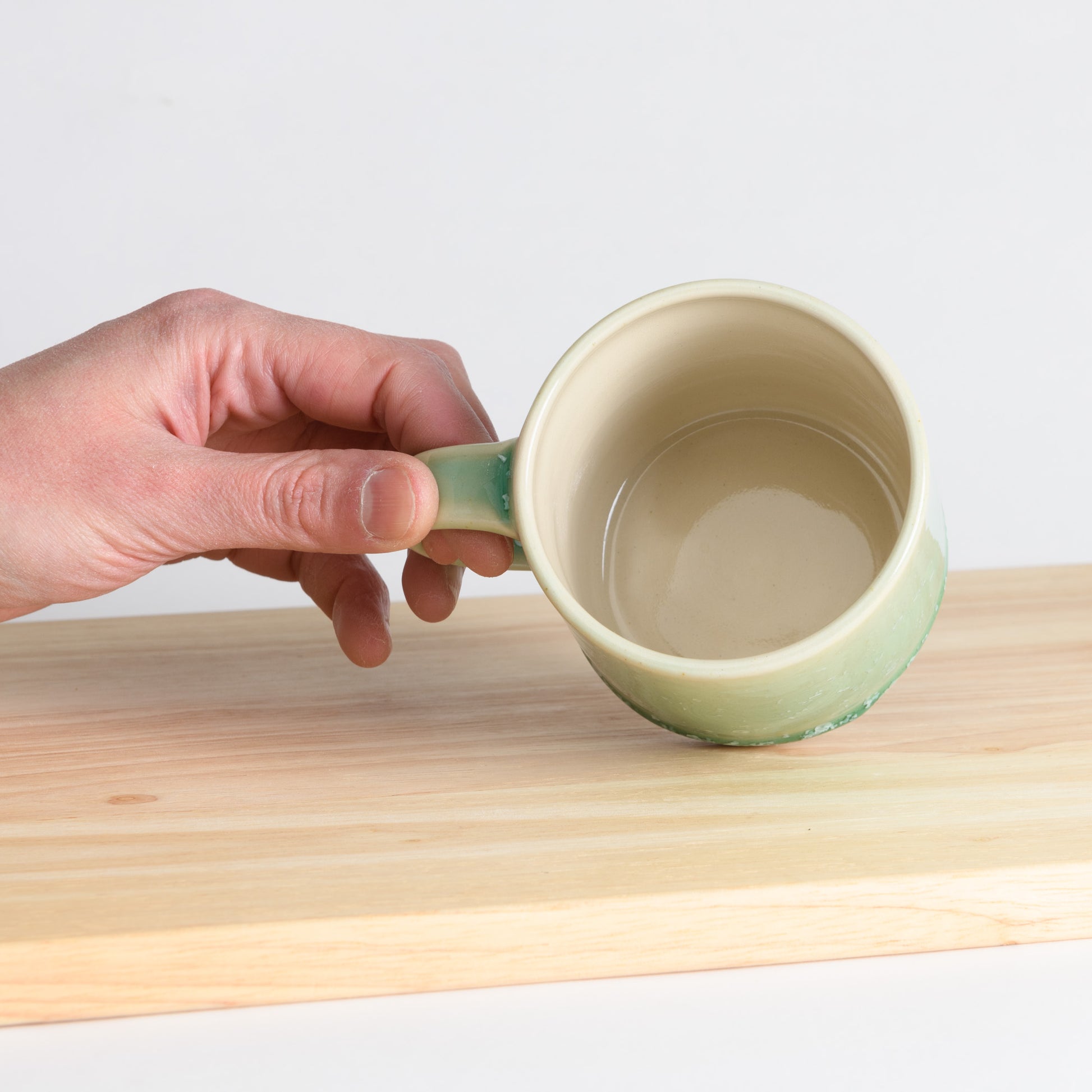 A mug that you will love to use — with a comfortable handle and a silky smooth bottom.