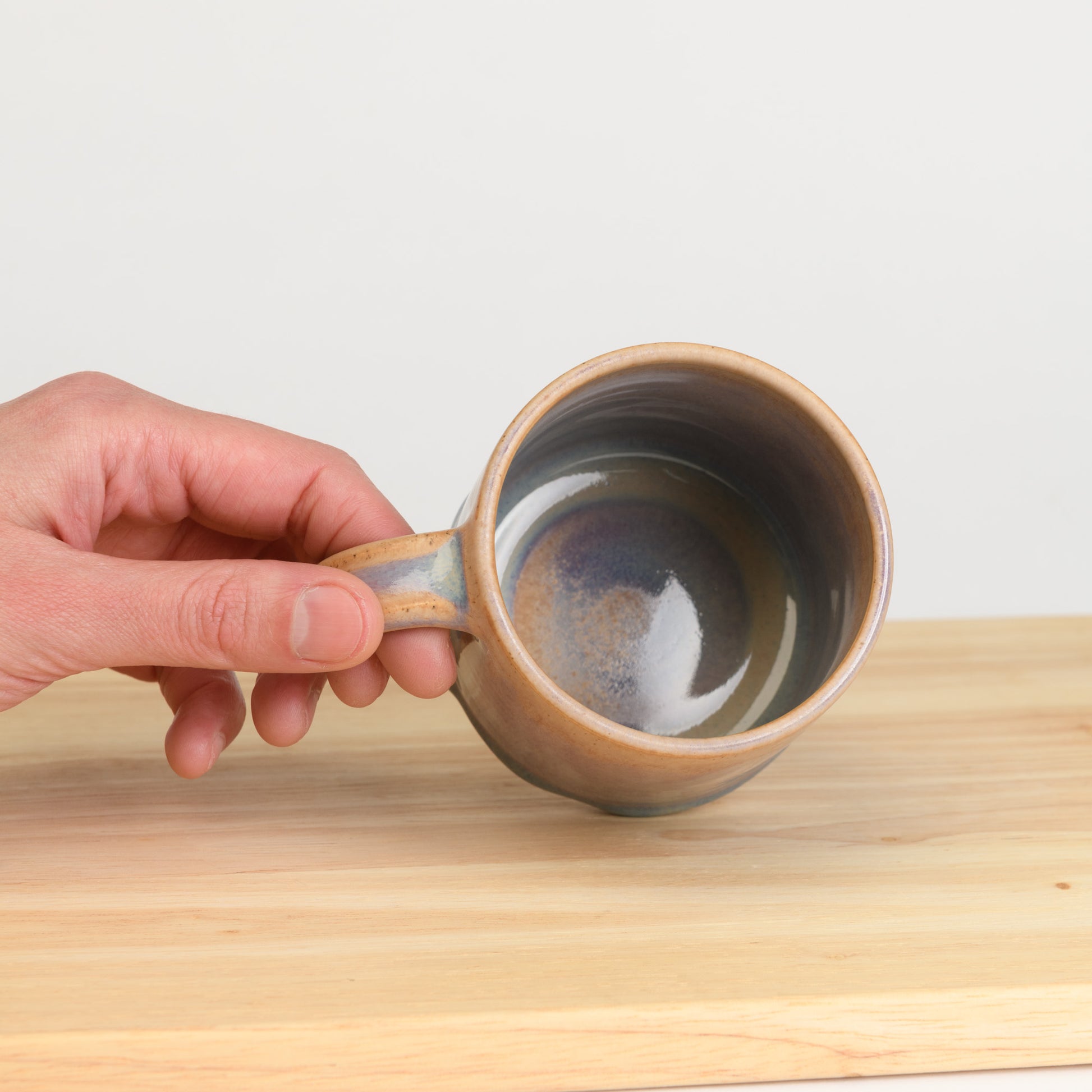 Glazed with a beautiful multi-tonal glaze, each mug has a unique pattern of rust, purple, blue and cream colours. No two are ever the same!