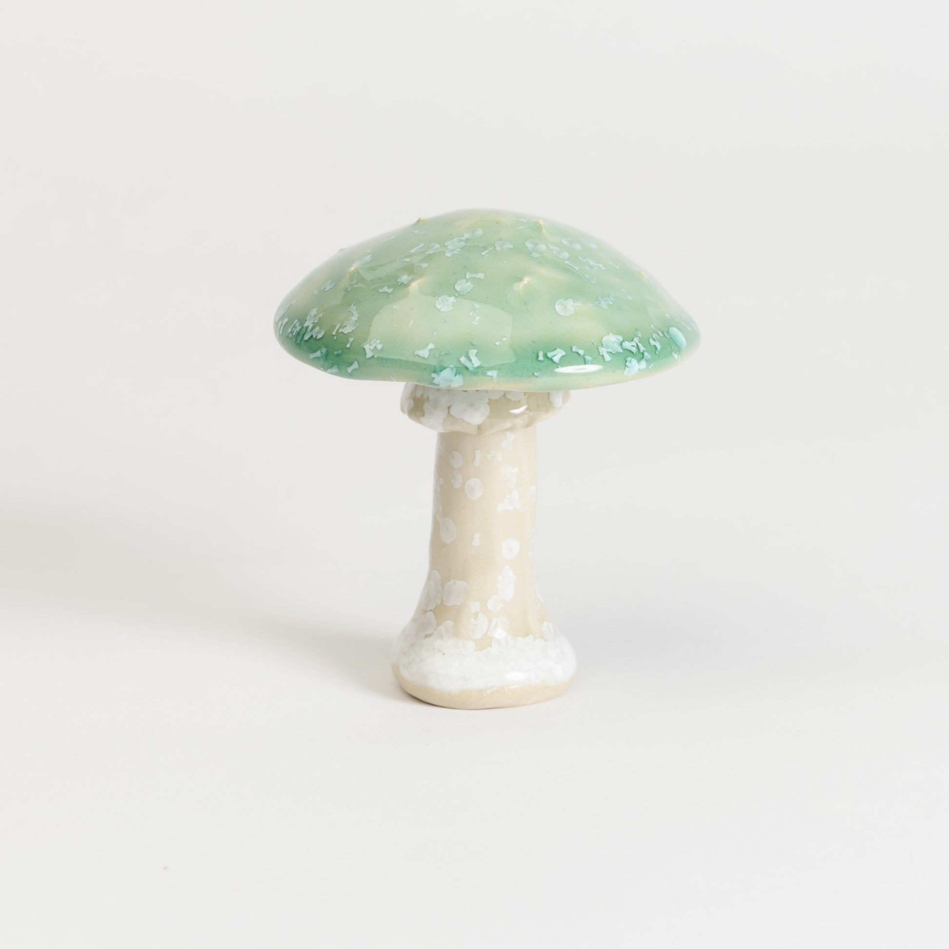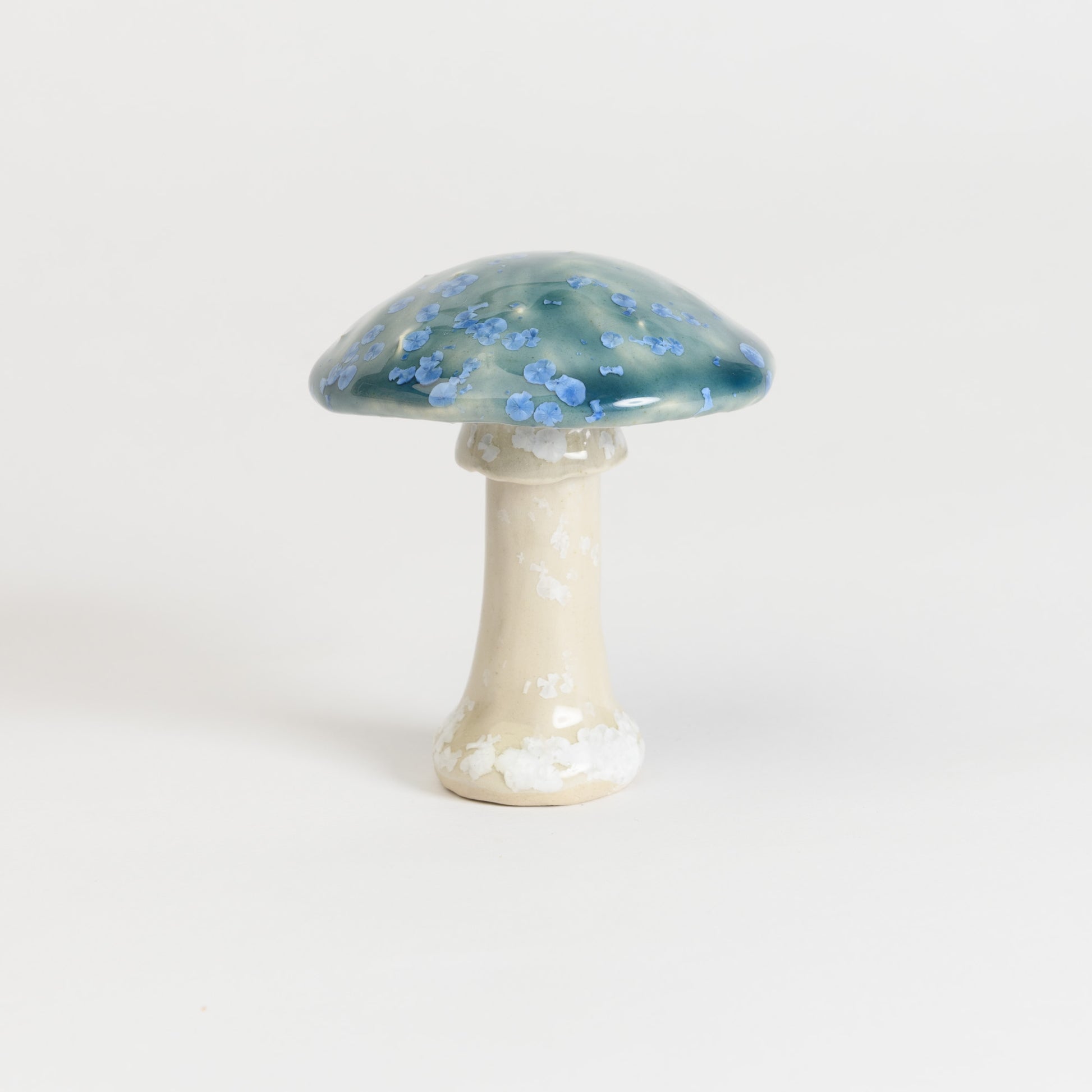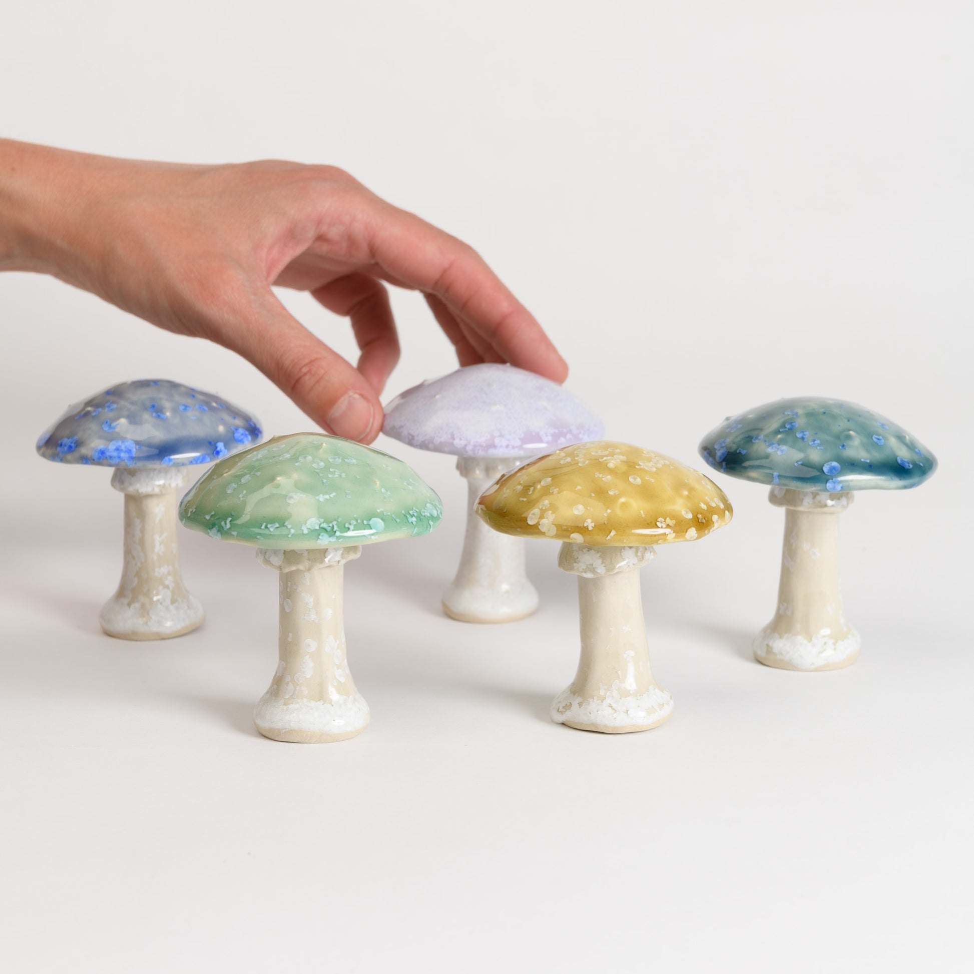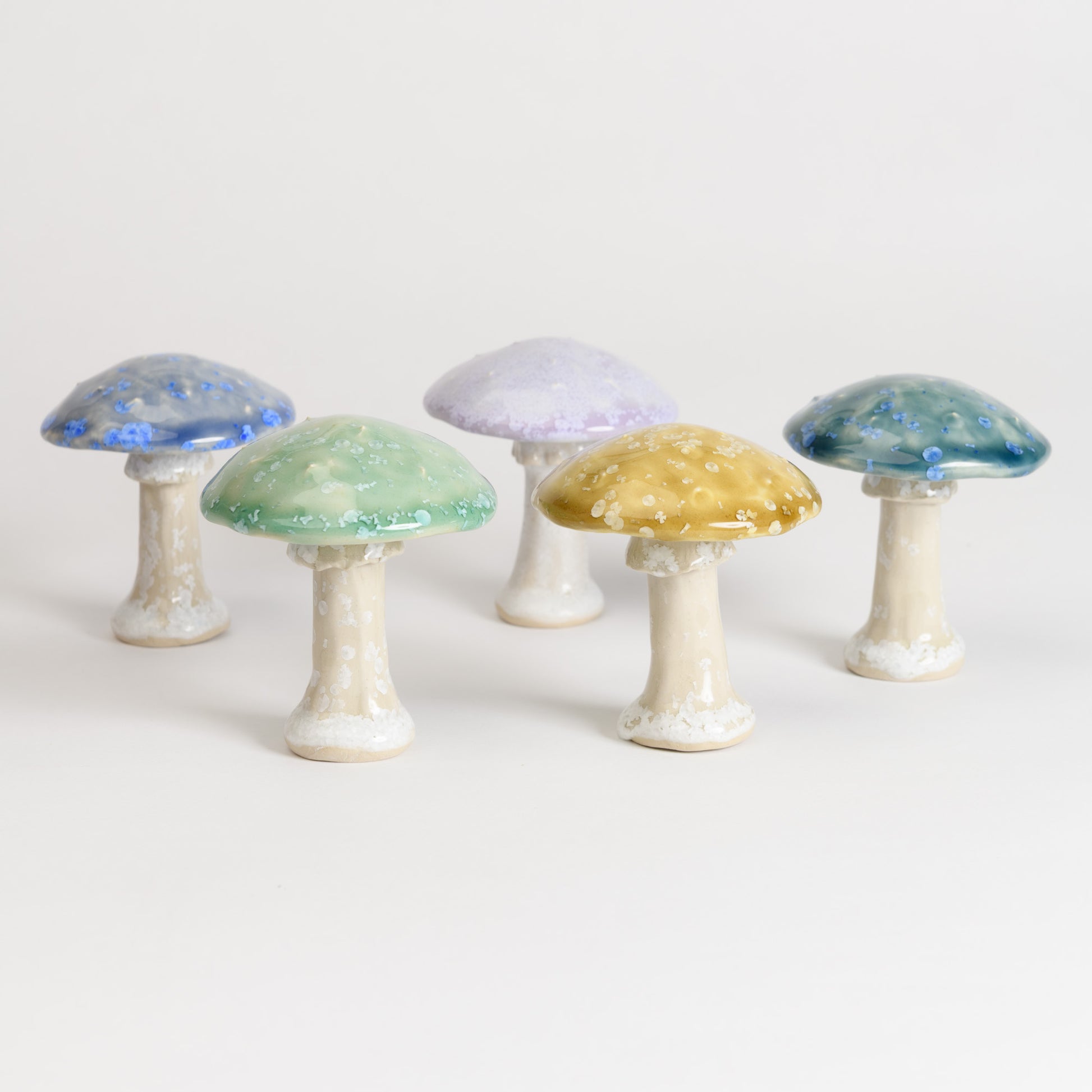 Whimsical fly agaric mushrooms in a selection of beautiful crystalline glazes.