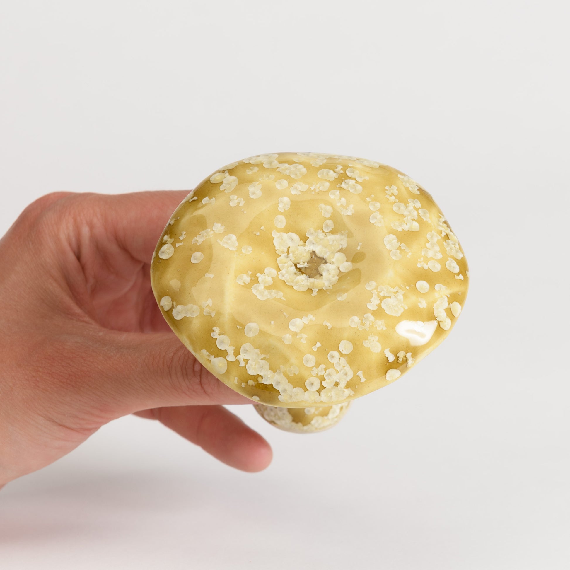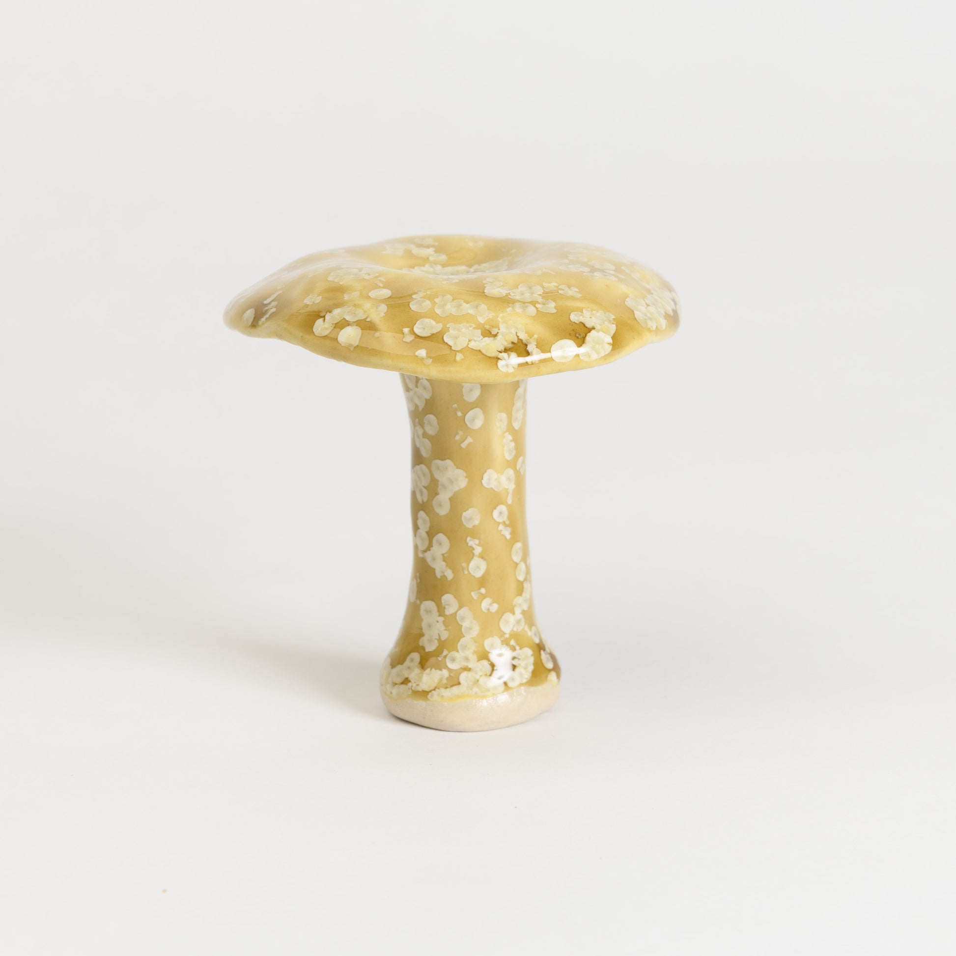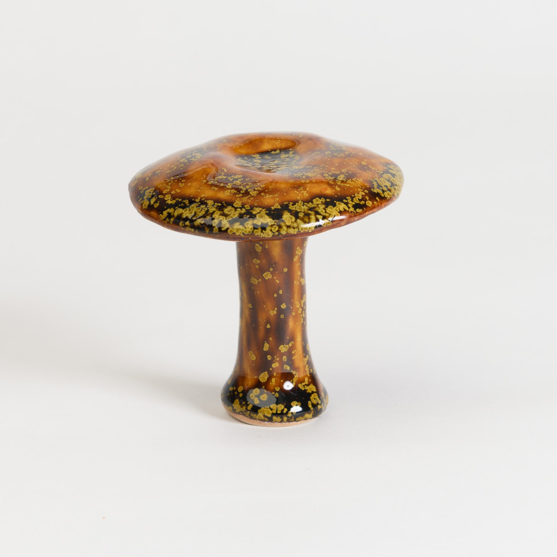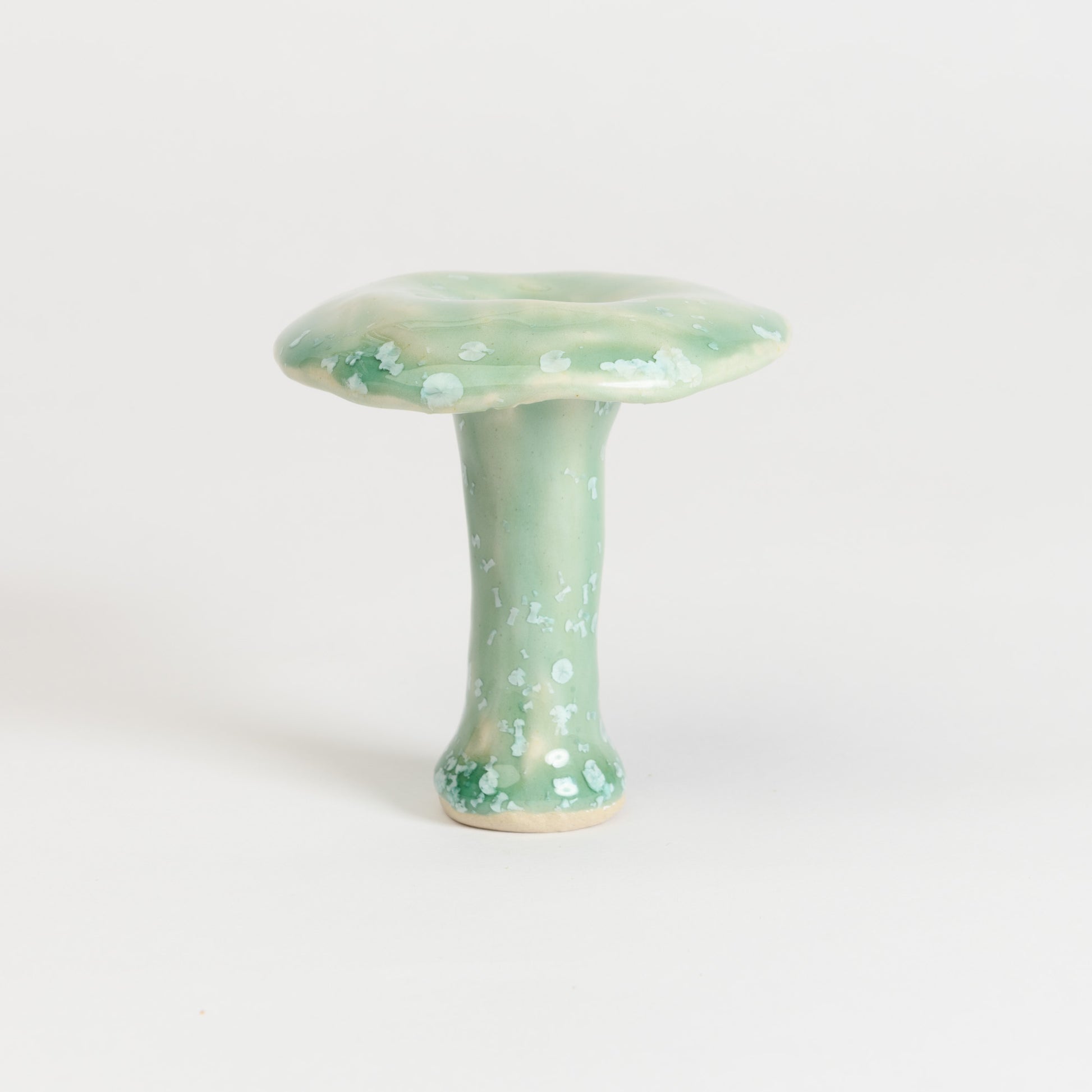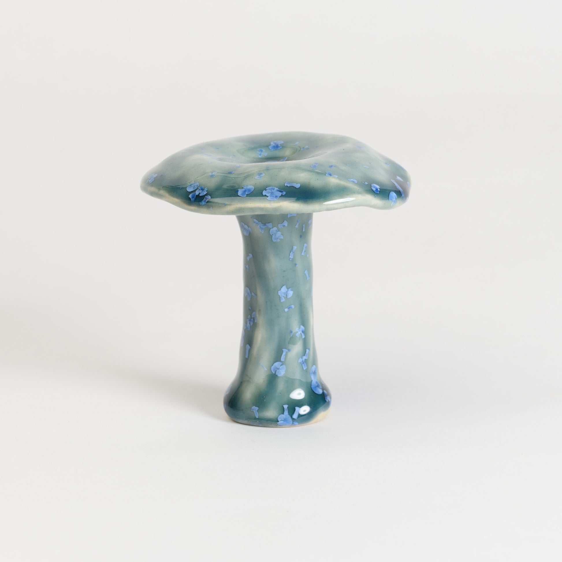 Whimsical milkcap mushrooms in a selection of beautiful crystalline glazes.