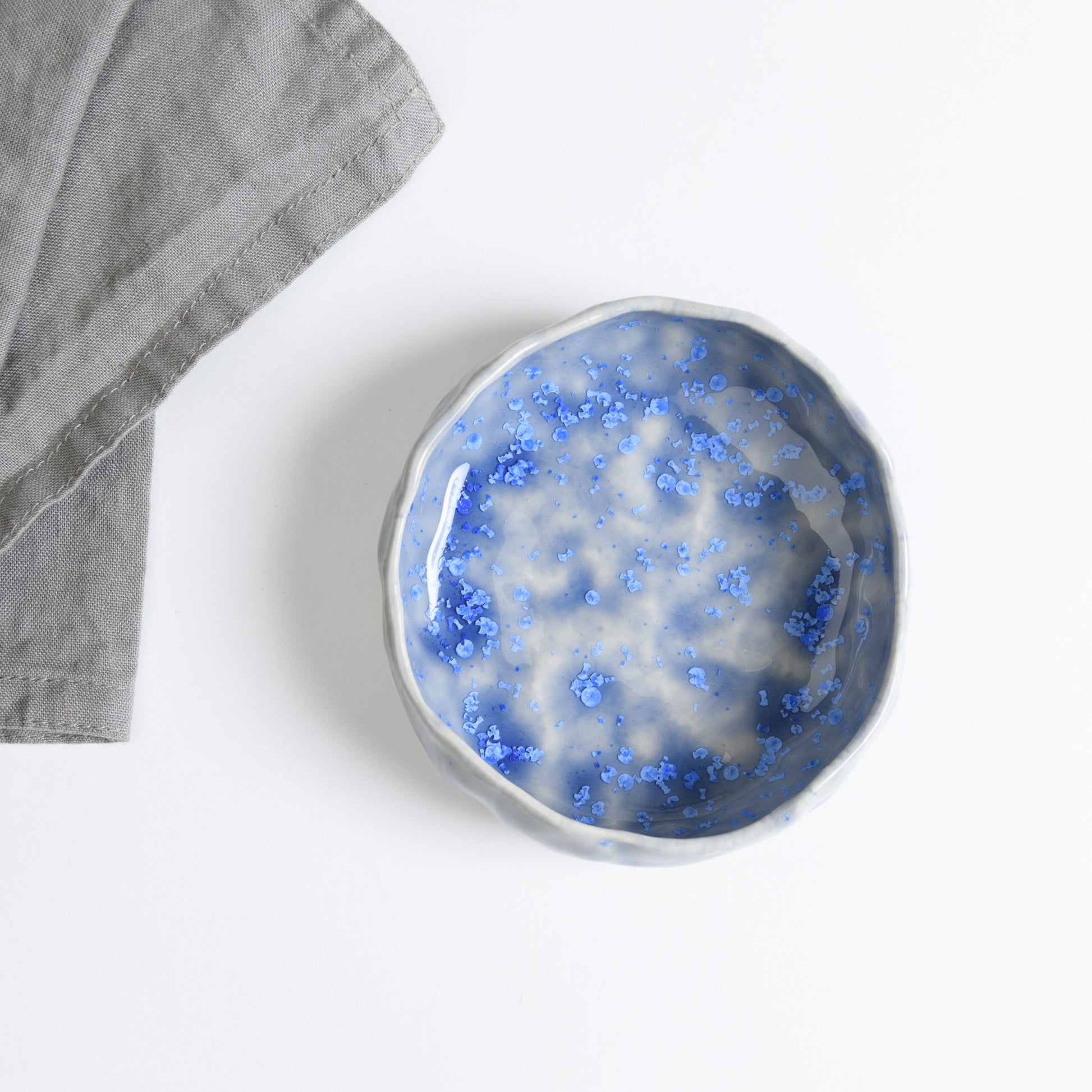 Each bowl is glazed with a beautiful crystalline finish, creating a unique pattern of crystals over a blue background - no two are ever the same!
