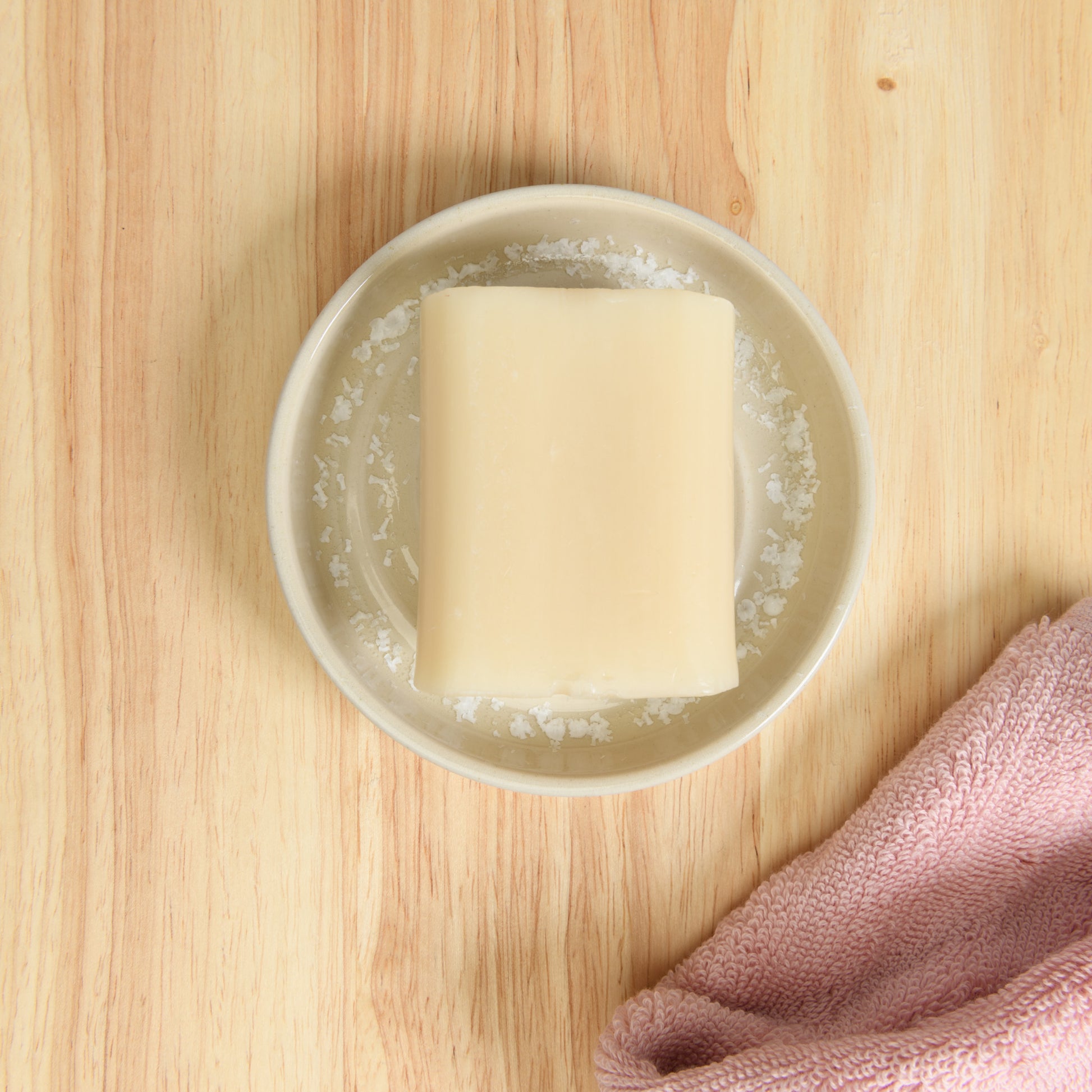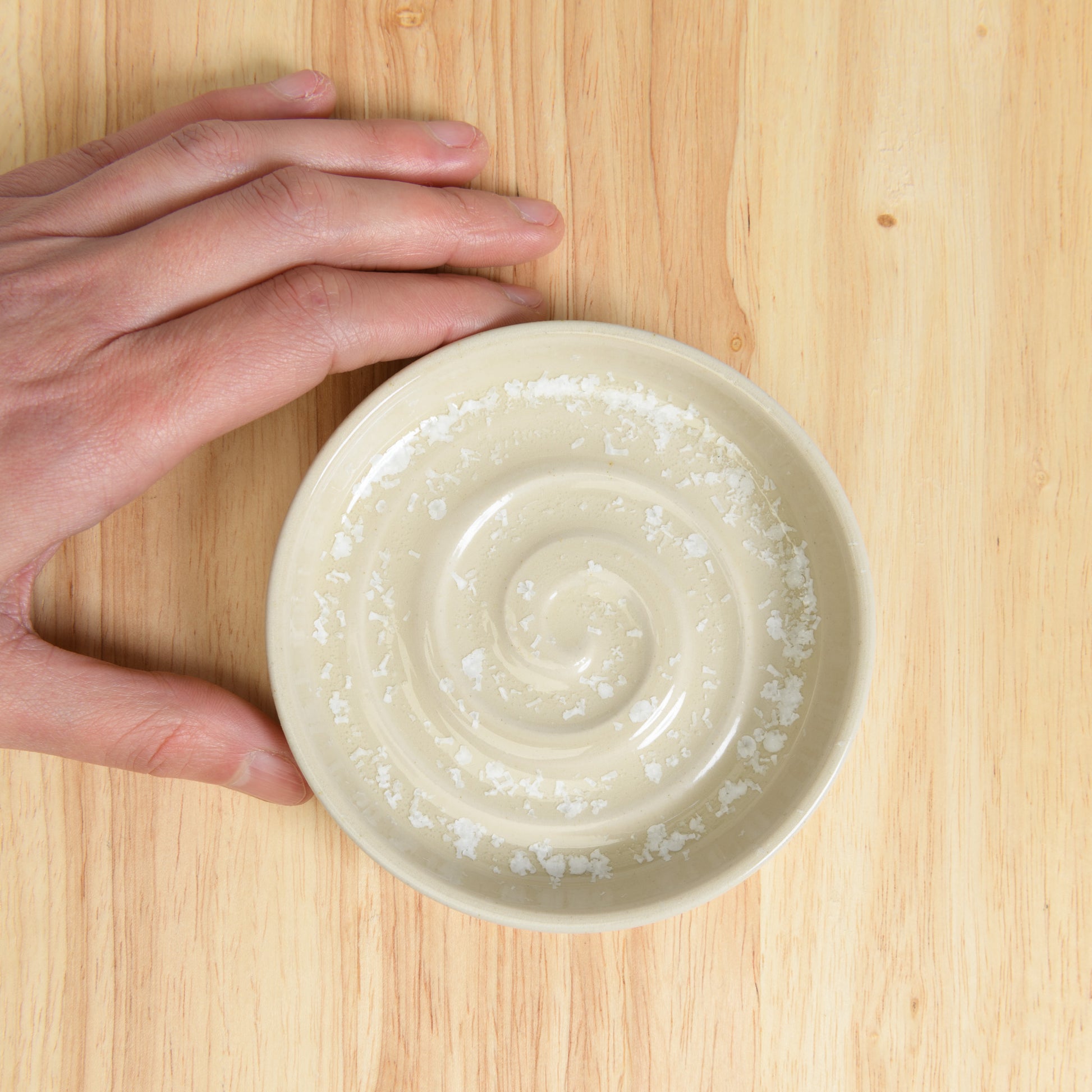 Handmade ceramic soap dish glazed with a transparent glaze with beautiful white crystals. The bottom is sanded to a silky smooth finish.