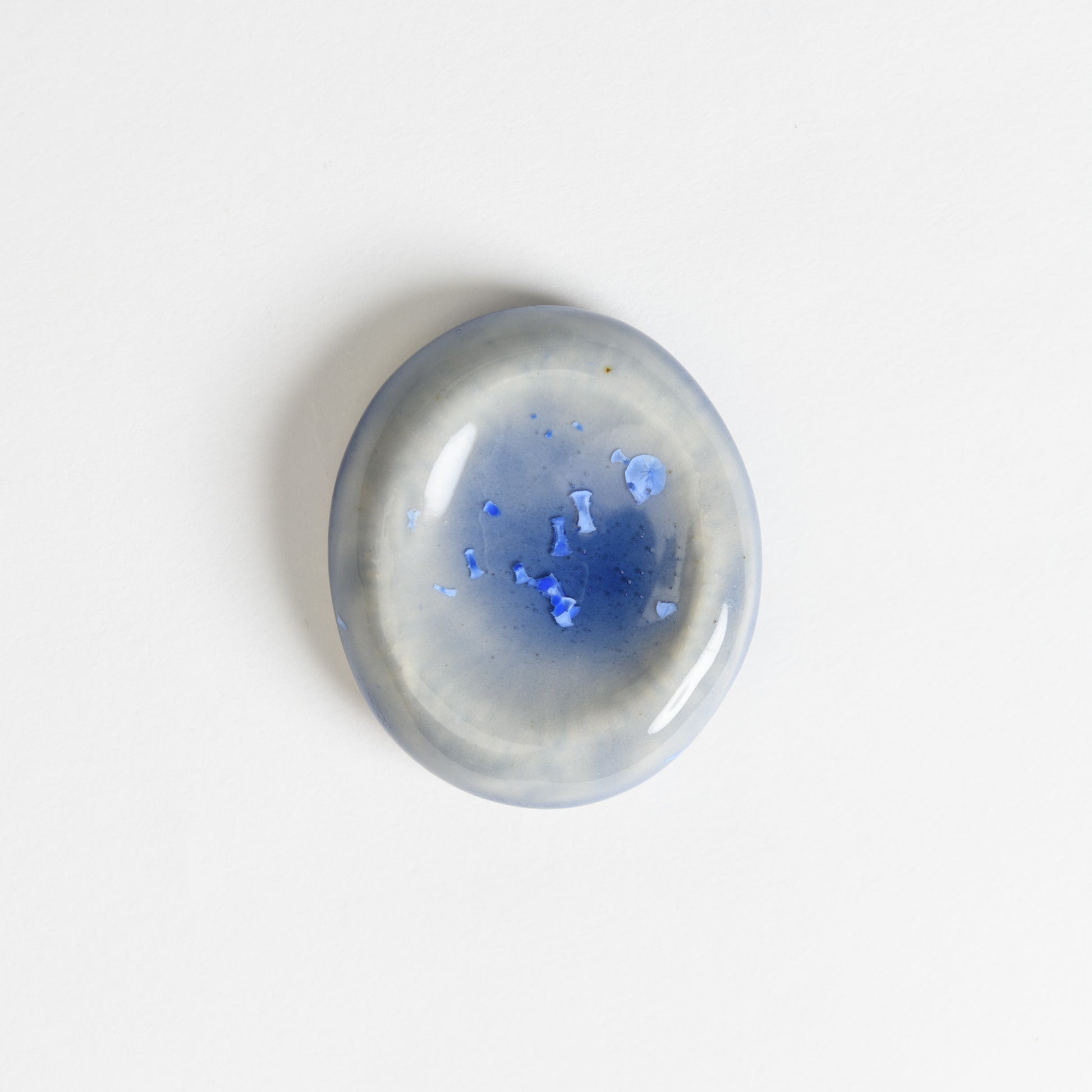 The top has a glazed thumb-shaped indentation, and the texture feels like a polished gemstone or glass.