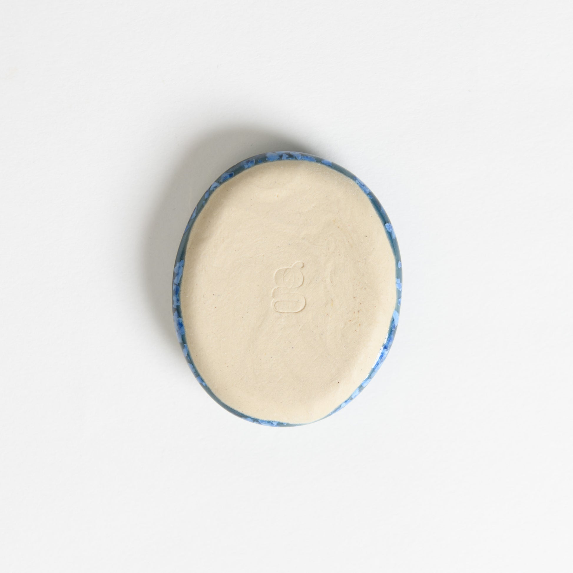 The top has a glazed thumb-shaped indentation, and the texture feels like a polished gemstone or glass.