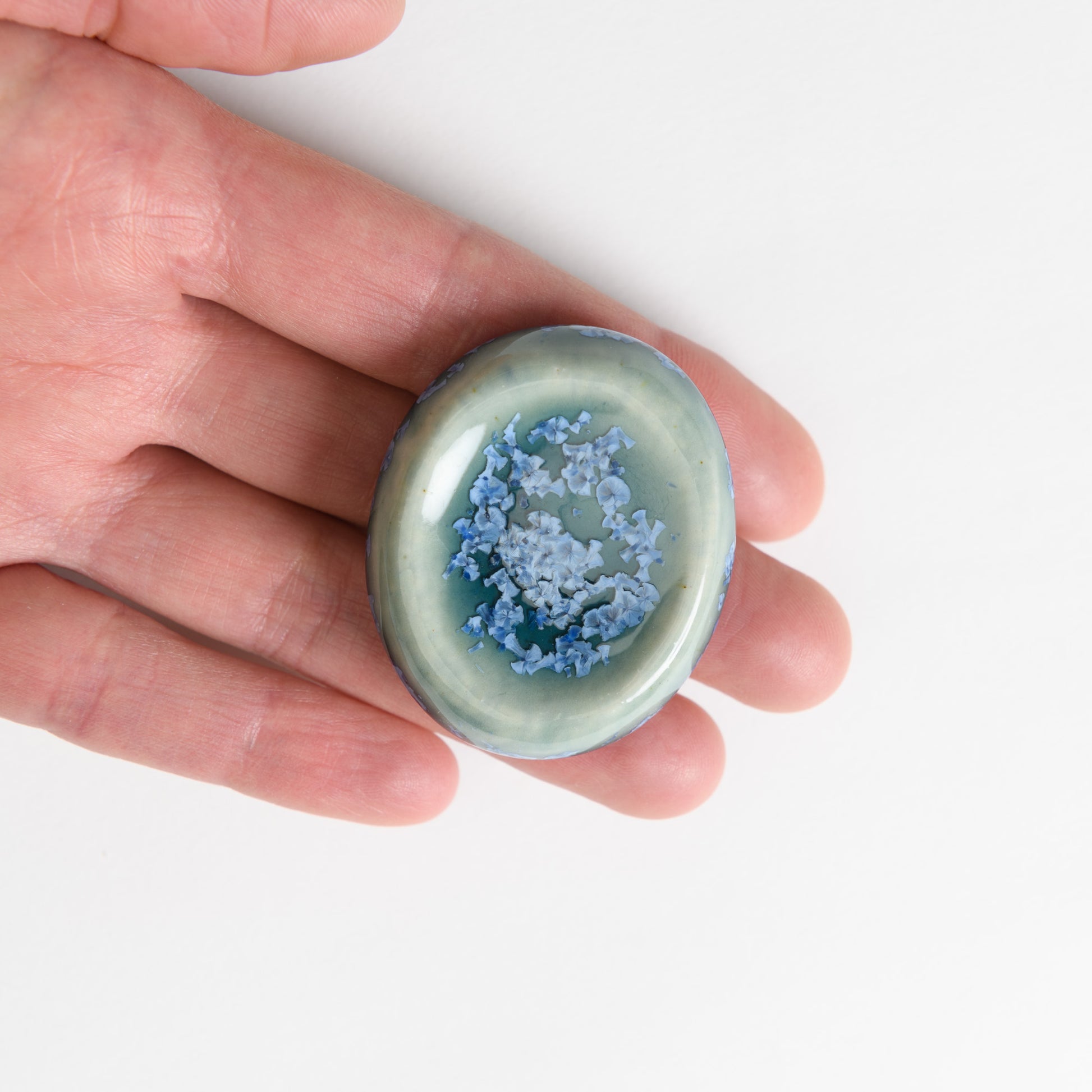 Each stone is glazed with a beautiful crystalline finish, creating a unique pattern of blue crystals over a teal background - no two are ever the same!