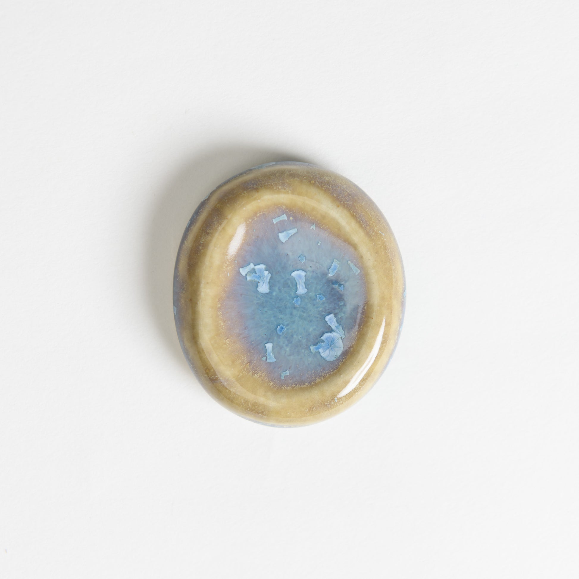 The top has a glazed thumb-shaped indentation, and the texture feels like a polished gemstone or glass.