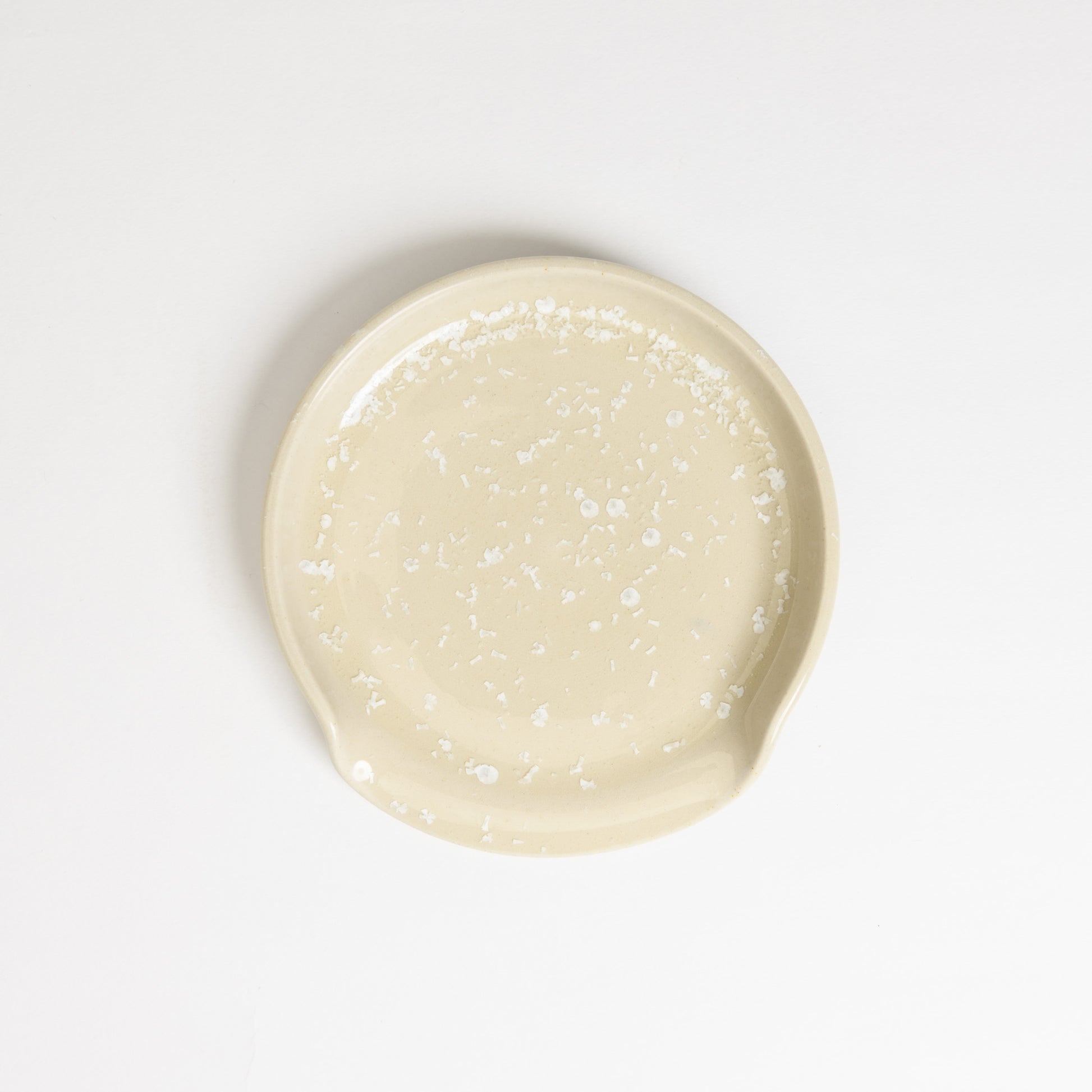 Glazed with a beautiful crystalline glaze, each spoon rest has a unique pattern of white crystals over a transparent background. No two are ever the same!