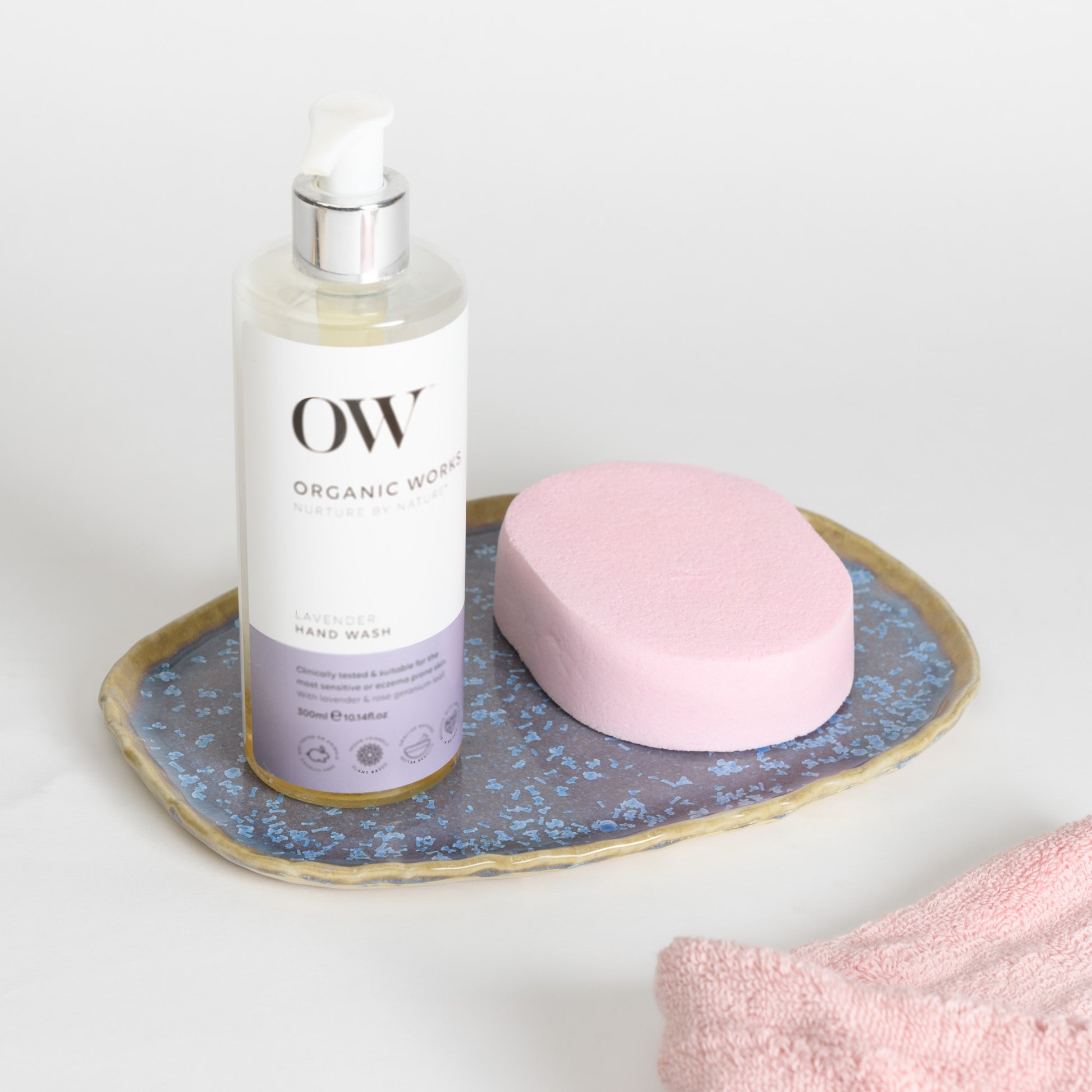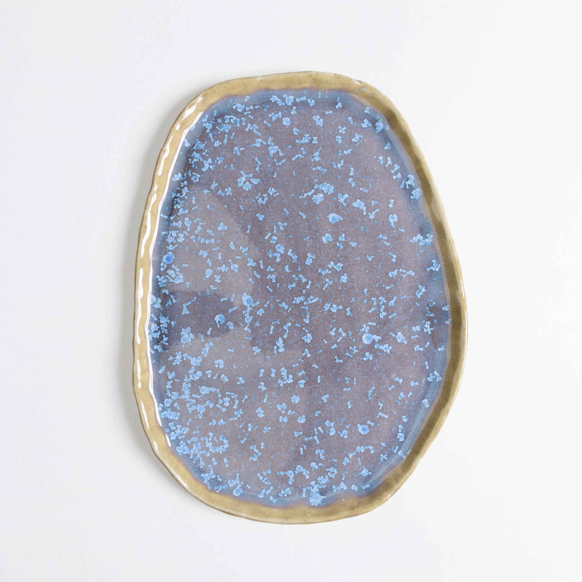 Each tray is glazed with a beautiful crystalline finish, creating a unique pattern of baby blue crystals over a multi-tonal purple, blue and cream background - no two are ever the same!