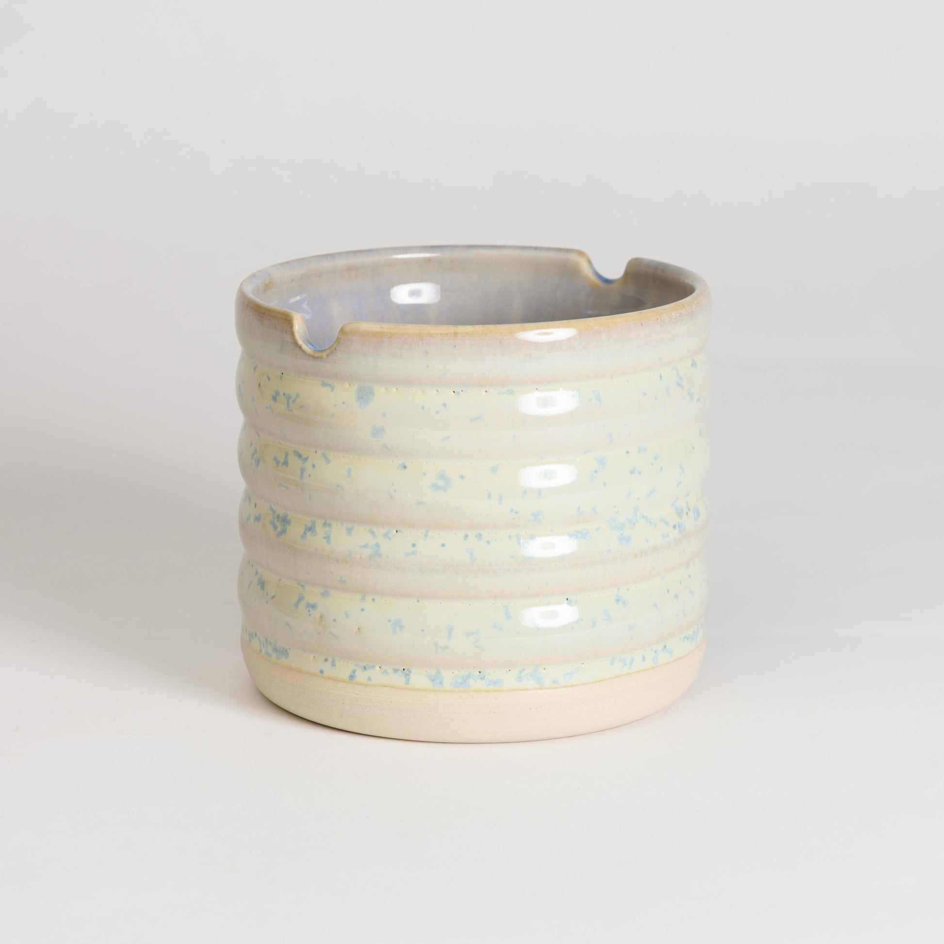 This handmade brush cup is designed with artists in mind. The rim features two rounded notches, perfect for resting your brushes while you work. Use it to rinse or hold your brushes in between colours — a practical and beautiful addition to any painter’s studio or workspace.